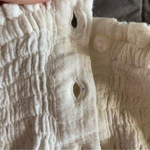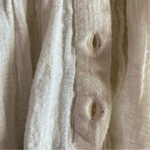 Women’s small cream colored We the Free smocked gauze crop top, dancing til dawn top, off shoulder, buttons, 3/4 sleeves, small blue dots by each button hole (see last 3 pictures for details)