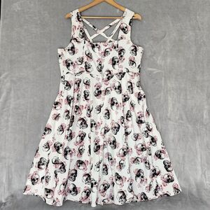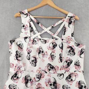 Torrid Dress Womens 14 Skull Rose Print Strappy Criss Cross Fit Flare Skater
