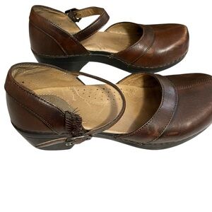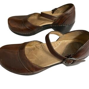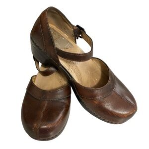 Dansko Holland Clogs Size 7.5 Brown Leather w/Strap.