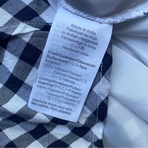 J. Crew dark navy gingham pull on skirt. High lo hem. side pocket’s, fully lined with a ruffle hem. Description in photos. Lightweight easy to wear skirt. Great used condition.