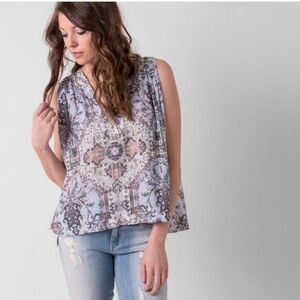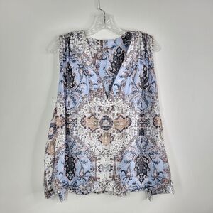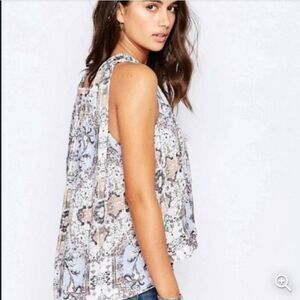 FREE PEOPLE Darcy Swing Sleeveless Blue and White Abstract Print Top Size Medium