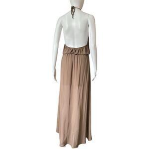 SHOW ME YOUR MUMU HEATHER CHIFFON HALTER DRESS GOWN SZ S TAN STRETCH LAYERED