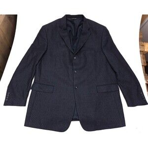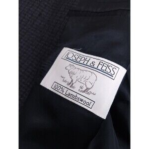 Joseph & Feiss Sport Coat 48 Long 3 Button Blue Black 100% Lambs wool