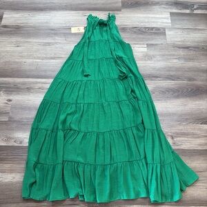 Entro Kelly Green Tiered Midi Dress Women's Size Small S High Neck Halter NWT