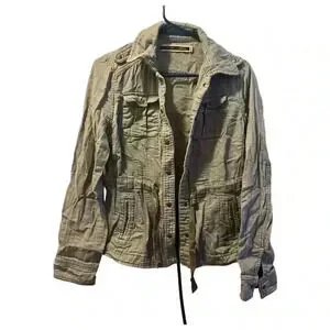 Discover the perfect blend of style and functionality with this chic military jacket. Designed for the modern woman, this jacket features an adjustable waist to flatter your figure and an array of functional pockets to keep your essentials close at hand. The durable canvas outer shell offers lasting wear, while the front button closure adds a classic touch to this timeless green piece. Whether you're running errands or enjoying a casual outing, this jacket is the ideal companion for those who value both fashion and practicality. Condition: New.