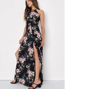 NWOT Lulus Feel the Music Midnight Blue Floral Print Maxi Dress