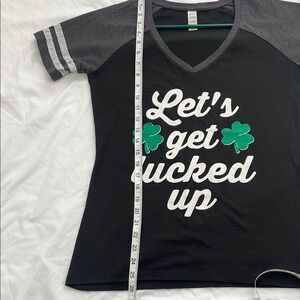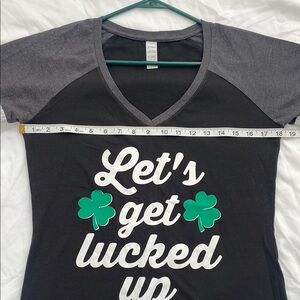 Black and Gray St Paddy’s St Patrick’s Tee “Let’s get lucked up” green shamrocks