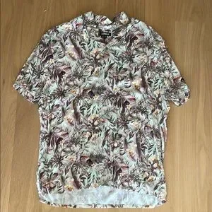 Express Casual Floral Button Down Shirt Light Cream