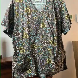 Libby Heart and Peace Sign Scrub Top