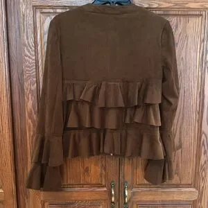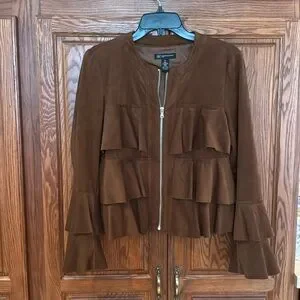 INC Ruffled,suede-like jacket/blazer. Can be casual or dressy. Perfect condition. Size Small petite. Beautiful brown color.