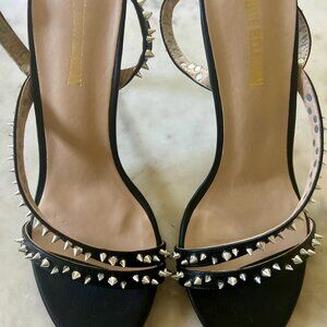 True Religion Margaux Spike Studded Black Stiletto Heels | Faux Leather Size 8.5