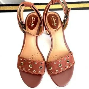 Like new Clarks Brown Ankle Strap Block Heel Sandals