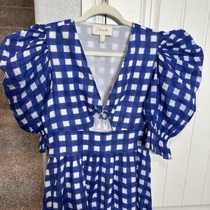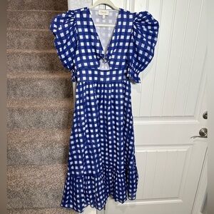 CLEOBELLA Morina Ankle Maxi Dress in Painterly Gingham Blue Medium