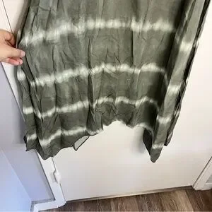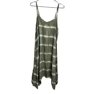 LOGO Lori Goldstein Green Tie-Dye Spaghetti Strap Sharkbite Hem Midi Dress