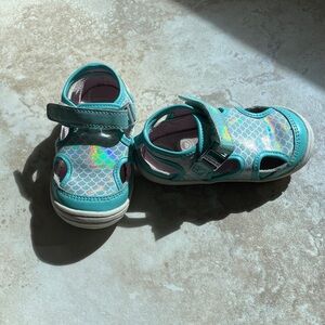 These Stride Rite kids' shoes feature a fun iridescent teal mermaid design, perfect for everyday adventures.