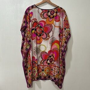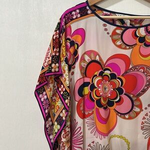 TRINA TURK WOMENS TUNIC ROUND NECK LIGHTWEIGHT MULTICOLOR Sz ONE SIZE