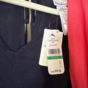 Tommy Bahama St. Lucia Split Shoulder Dress in navy and coral. Navy has never been worn. There is a cute tie included for cinching the waist.