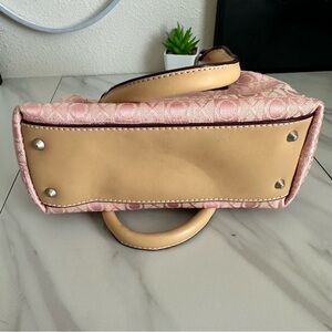 This XOXO bag combines elegance and functionality with its soft pink and tan color palette. Crafted from durable materials, it features gold-toned hardware and a secure zipper closure, making it perfect for organizing your essentials in style.