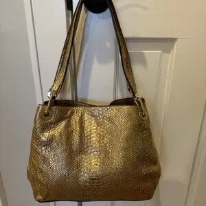 Michael Kors Raven Gold Metallic Embossed Shoulder Bag Tote