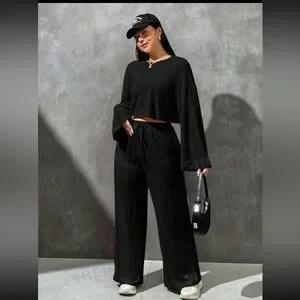 SHEIN curve lounge set; size 2xl; black color; includes cropped sweater and wide leg pants; new w/out tags; washed once but never worn;