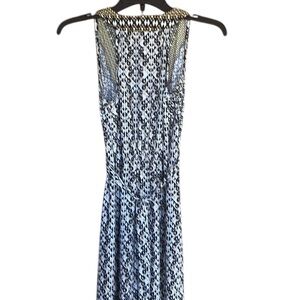 ROZ & ALI Elegant Pattern NAVY BLUE YELLOW V-neck sleeveless maxi tie back