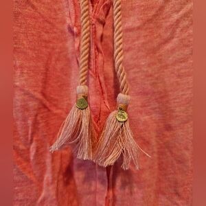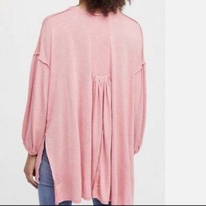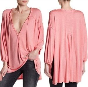 Free People Just A Henley Linen Blend Oversized V Neck High Low Hem Pink XS NWT