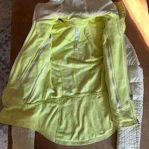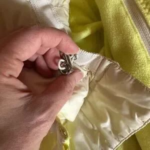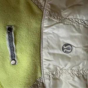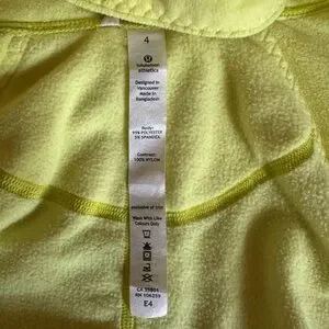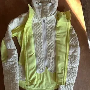 Size 4. Quilted fleece jacket with detachable hoodie. Also double lined and removable insert. Beautiful Citron color. Worn, but no rips/tears.