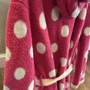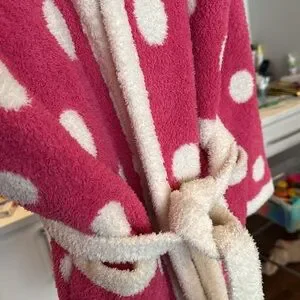 💕HP💕Barefoot Dreams polka dot short hooded pink robe