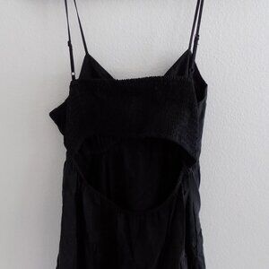 A New Day V Neck Maxi Tiered Dress NWT. Open back with smocking. It is a nylon blend so has kind of a swishy feel.