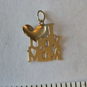 This elegant gold-colored pendant features the heartfelt message 'I ♥ You MOM', crafted with a simple and timeless design. The charm includes a small loop for easy attachment to a necklace, making it a perfect piece to express love and appreciation. Its classic appearance ensures it remains a cherished keepsake.