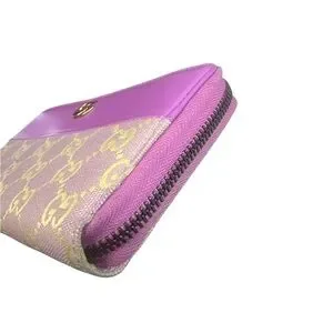 GUCCI Calfskin GG Supreme Monogram GG Marmont Zip Around Wallet Lilac