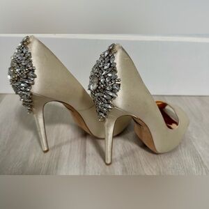 Badgley Mischka Peep Toe Heels, Size 8 1/2, Color Latte Satin