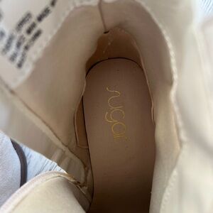 Step out in style with these chic cream ankle boots by Sugar. Perfect for any occasion, these boots offer both comfort and elegance. Worn once but just a little too small. Size 7.5B
