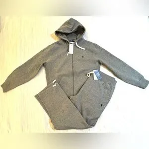 Polo Ralph Lauren Classic Full-Zip Fleece Sweatsuit Ash Grey Heather Black Pony