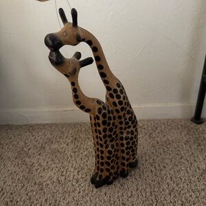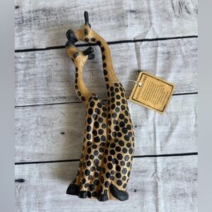Asia Overland Hand Carved Wood Giraffes Statue Figurine Painted Brown NEW NWT