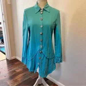 Neon Buddha Blue Sparkly Buttons Tunic Size Medium