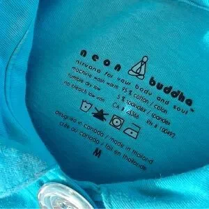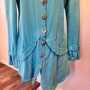 Blue Neon Buddha button front tunic top in size medium. Features Decorative Buttons. Long sleeves.