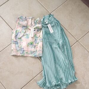 Chic floral top with a pleated aqua pant. Perfect for a stylish look. Nwt