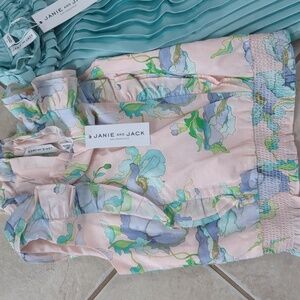 Pink Floral Top and Pleated Bubble Aqua Pant Set Janie And Jack Size 7 NWT