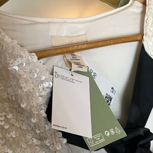 H&M Tie Front Sequined Jacket in White Sequins with Black Bows NWT Size M