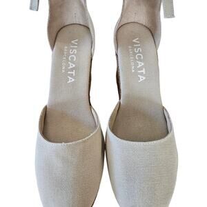 Viscata Estartit Canvas Espadrille Wedges, Size 39 (US 8.5). Excellent pre-loved condition. No stains or discoloration to canvas. Difficult to get pictures to show how clean the canvas on these shoes are, even the insole. Color: Beige