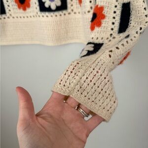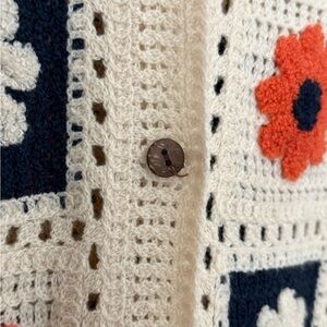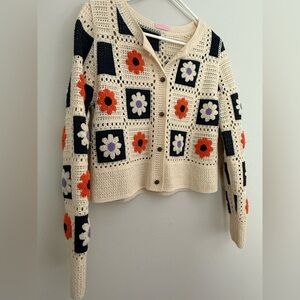 Women's Patchwork Crochet Sweater Cardigan Cottagecore Boho Size Large S/M