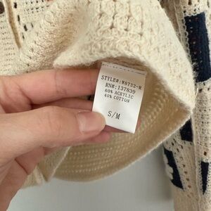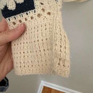Has small stain on sleeve. Some crochet areas have small pulls, not bad! Photos give accurate description of condition