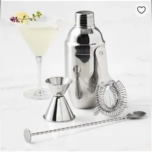 Includes: shaker, strainer, bar spoon & double-sided jigger