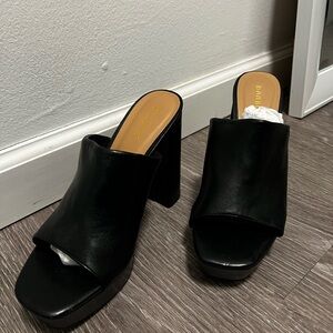 Step out in style with these chic black platform heels. Perfect for any occasion, these shoes offer both comfort and elegance.