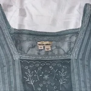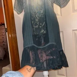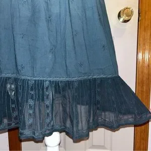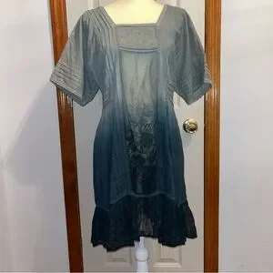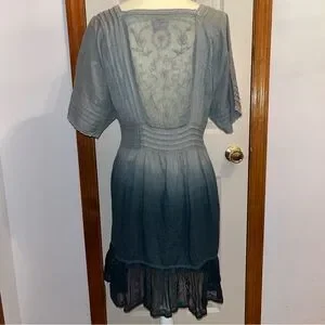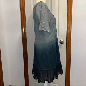 HOLDING HORSES • Anthropologie Ombre Ocean Dipped Lace & Embroidered Tunic Dress. Relaxed Short Sleeves. Squared Neckline; Front & Back, Accented with lace. Embroidered Sheer Panel Down the Front of the Dress, and at the Back. Embroidered Lace Riddle at Hemline. Micro Pleating. Embroidered Throughout all of the Cotton Fabric. Beautiful Dress. Relaxed Fit.