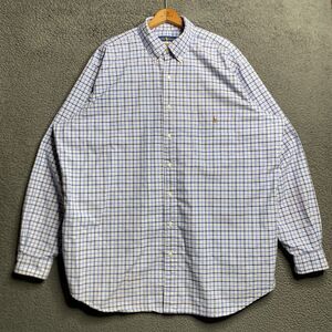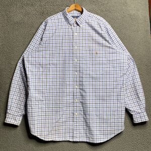 Polo Ralph Lauren Shirt Mens 2XLT Tall Blue Plaid Oxford Button Up Flesh Pony