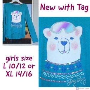 polar bear cozy glitter graphic top w sequin casual long sleeve shirt L 10/12