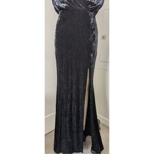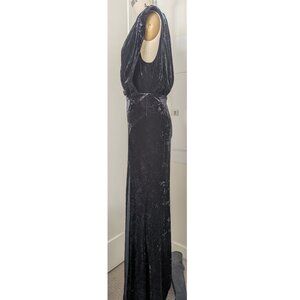 BCBGMAXAZRIA Black Crushed Velvet Evening Long Gown Size S
