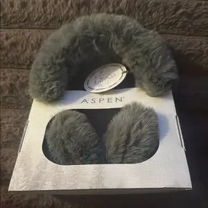 Cozy gray faux fur earmuffs by Aspen. Perfect for cold weather.